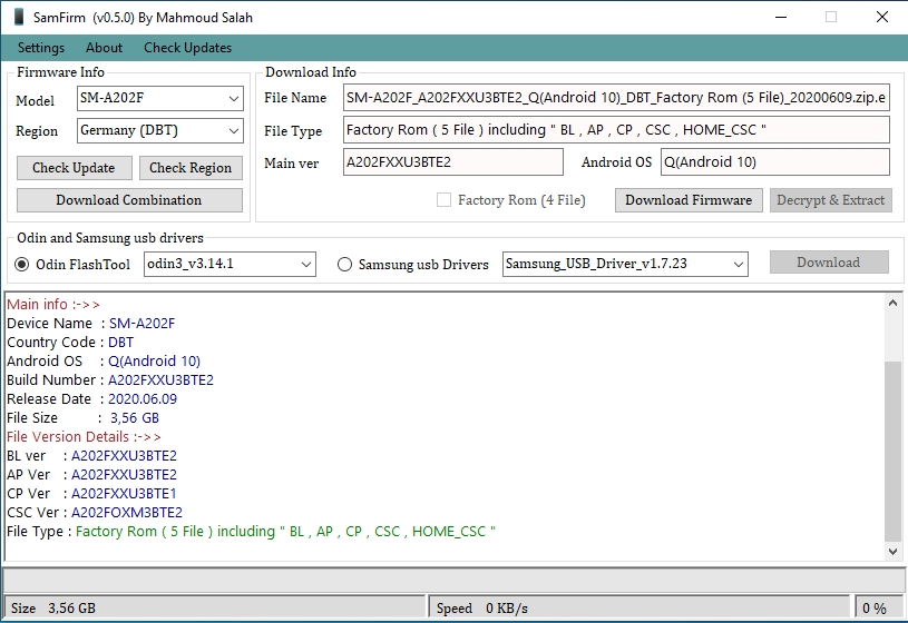 Für Windows gibt es eigens für Samsung-Modelle einen hübschen Downloader: Samfirmtool.